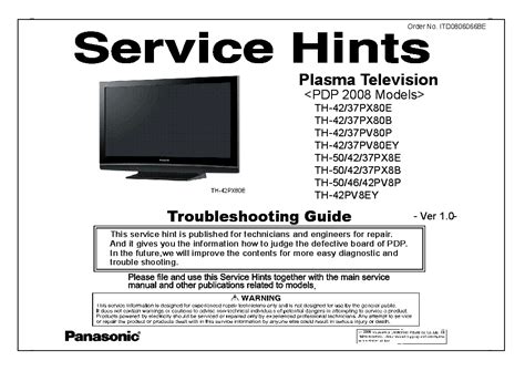 Presently you are looking with regard to an Panasonic Th 42px80 Service Manual Repair Guide example of which we provide here inside some form of document formats many of these as PDF, Doc, Power Point, and also images of which will make it simpler for you to create an Panasonic Th 42px80 Service Manual Repair Guide yourself. For a better look, you may open some examples below. All of the examples about Panasonic Th 42px80 Service Manual Repair Guide on this site, we get from several sources so you can create a better document of your own.